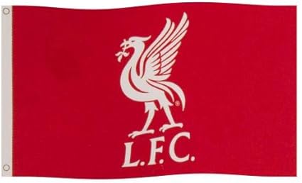 The lfc crest flag features red flag with darker red stripes large lfc crest 'liverpool fc' and 'you'll never walk alone' text white border dimensions 5 x 3 ft.
